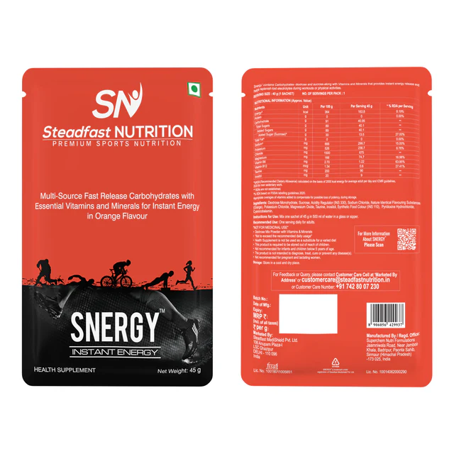 Steadfast Nutrition Snergy | Instant Energy & Hydration | Orange Flavour | 45g per Sachet
